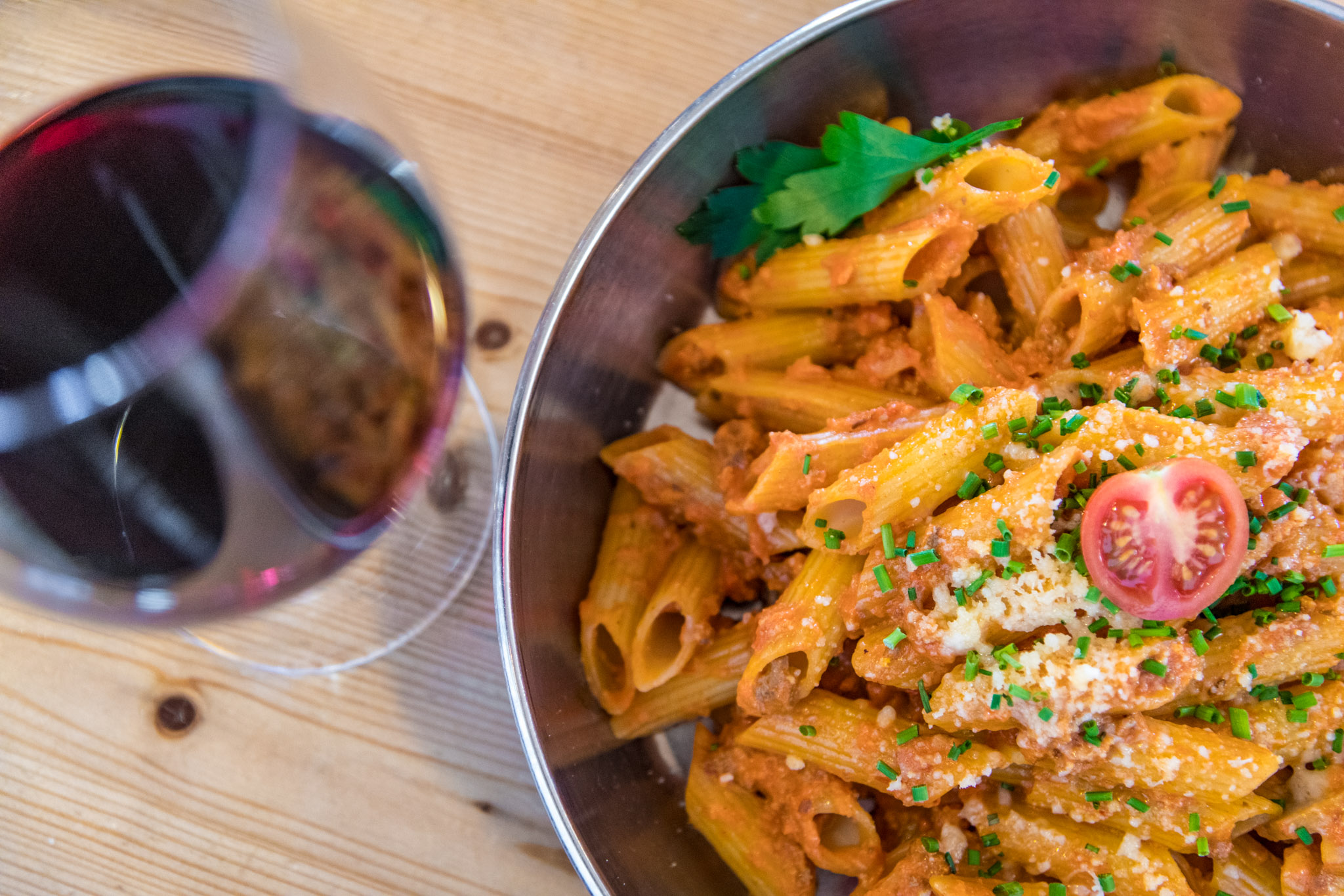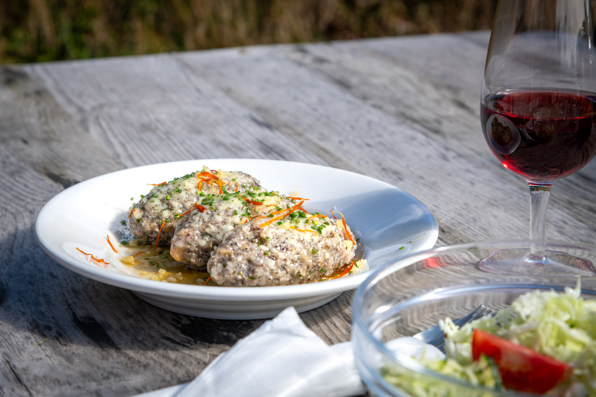 The symbiosis of two cultures is also evident in the cuisine. The menu features Tyrolean, rustic cuisine, and Mediterranean dishes.